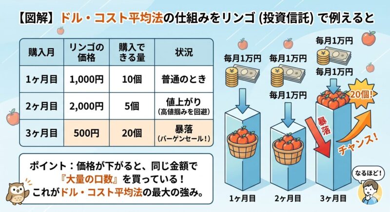 【図解】リンゴ(投資信託)を毎月1万円買う場合