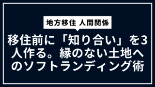 地域付き合い 地方移住 人間関係:移住前に「知り合い」を3人作る。縁のない土地へのソフトランディング術 縁のない土地への地方移住で「失敗したらどうしよう」を解消。移住前にSNSや民泊で3人の知り合いを作り、現地に馴染むそこそこ流のソフトランディング術を公開。 2026.02.23 地域付き合い地方移住